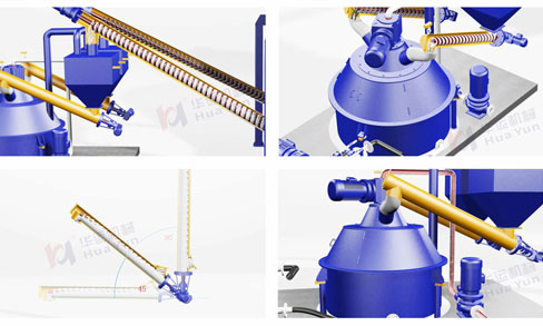 進料系統由多臺螺旋輸送機和稱重罐組成,通過螺旋輸送機將儲存罐里面的散裝水泥,粉煤灰等物料,采用螺旋輸送機定量均勻輸送到稱重罐,稱重后再輸送到特制攪拌罐進行攪拌;